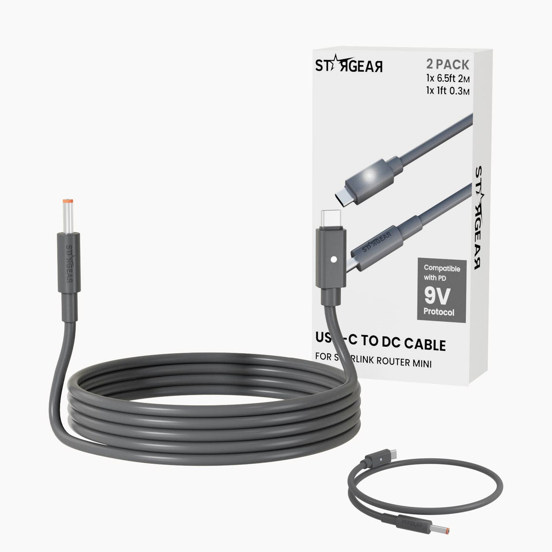 Starlink Router Mini Cable - 2 Pack (1FT + 6.5FT) USB-C to DC Power Cable Compatible with Starlink Mini Router, Plug and Play PD 9V Compatible Replacement for Starlink Internet Kit
